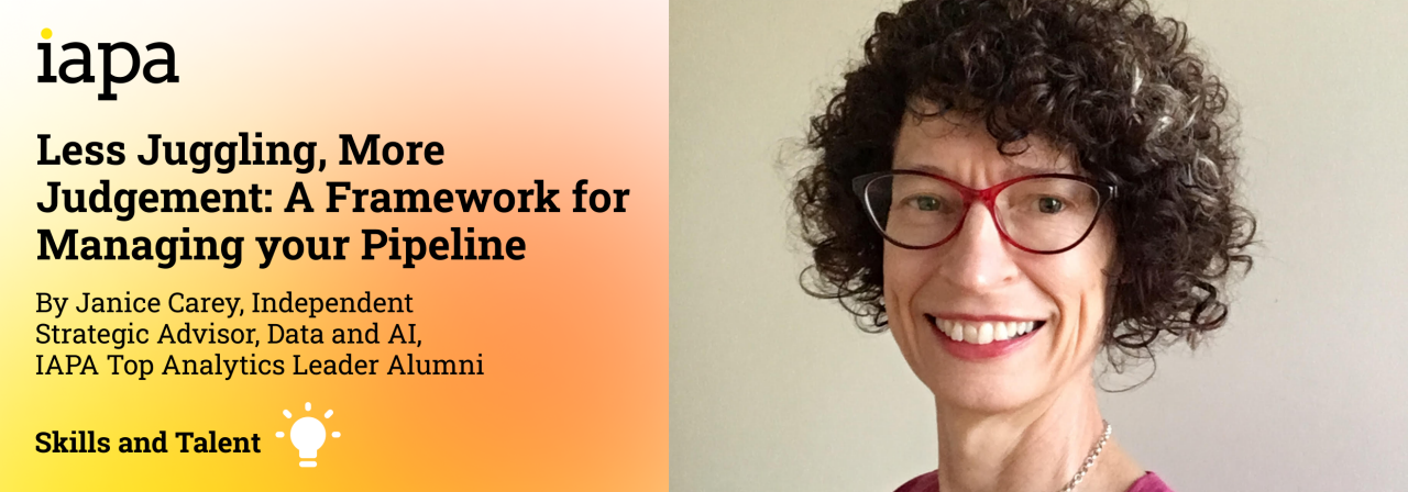 Analytics professionals, this is your reminder to step back and understand the problem to solve BEFORE you dive in! A witty and engaging conference presenter many years ago put it well when he said “The problem is not the problem. The problem is our inability to define the problem.” There’s also a great article on creating a strong reverse-brief in IAPA’s Thought Leadership Series, with insightful guidance on proving ROI and working on the right problems.